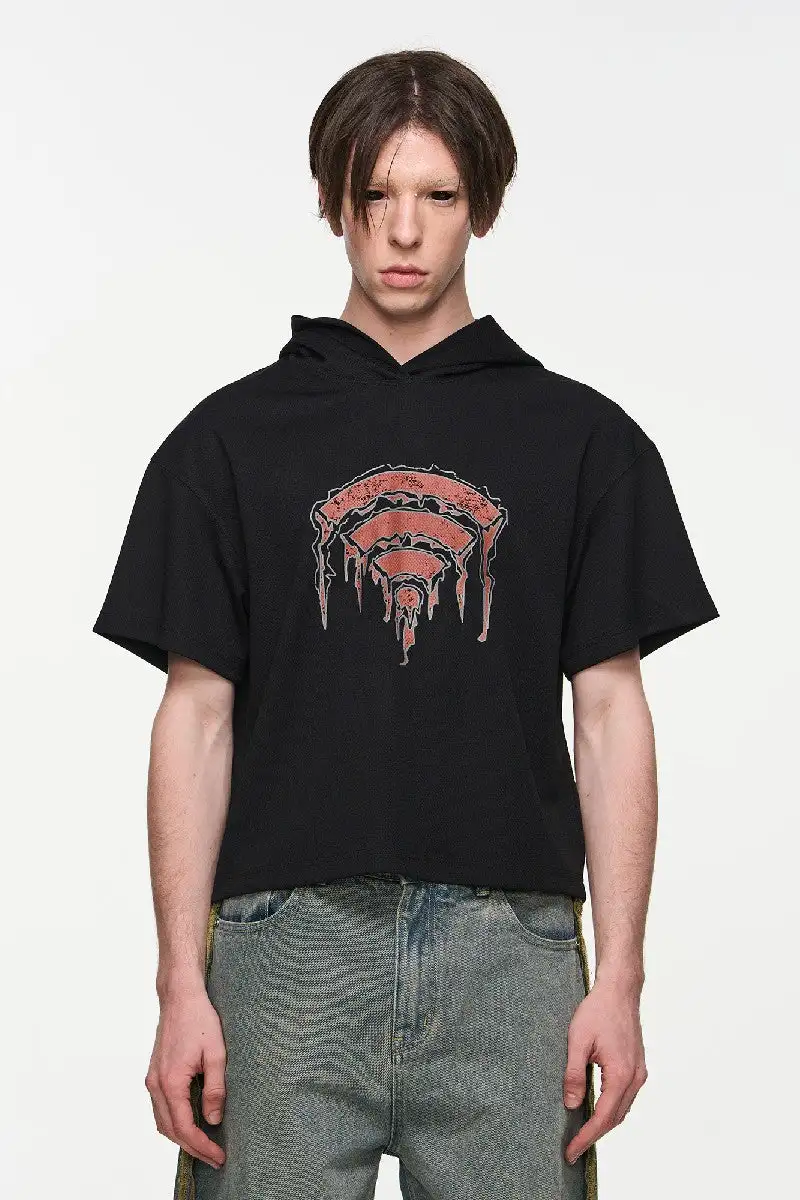 WIFI Print Texture Hoodie Tee